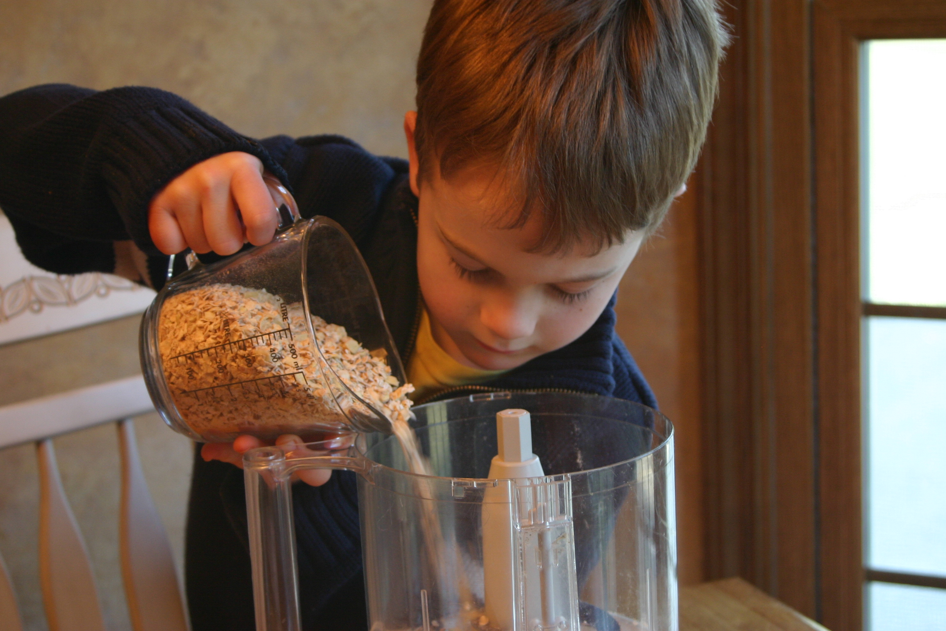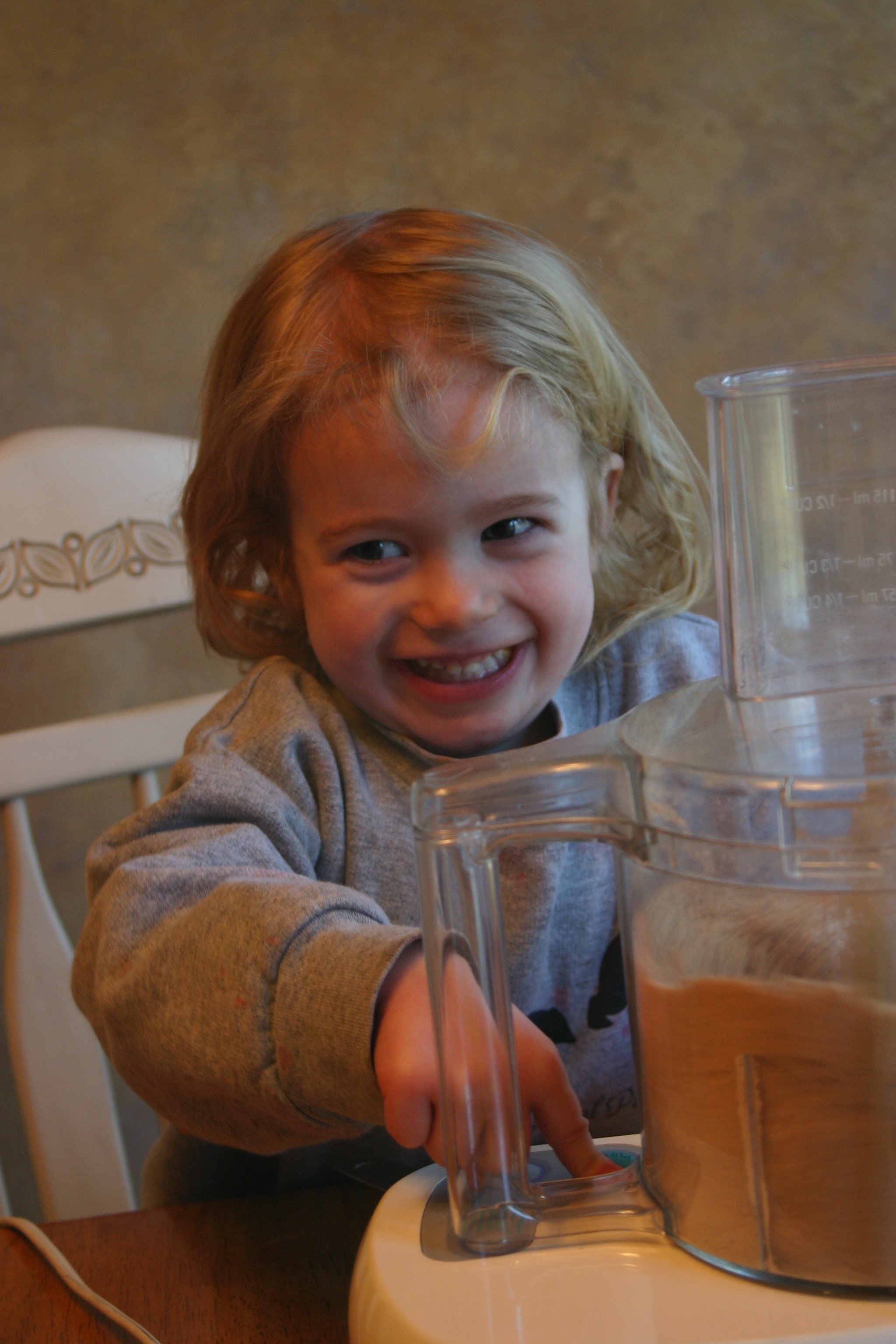 Mr. N took care of the oats and processed those for us. Then Miss A had her turn with the pecans and was loving the pulse button.
