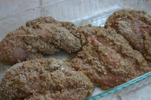 That looks good! I love baked chicken, so much better than frying it! I did a post on my version of crispy chicken skewers here: http://shecooksandheeats.wordpress.com/2011/07/21/theres-nothing-like-nuggets-and-boobies/. Please check it out and let me know what you think. Thanks for sharing! I’m new to blogging and love that there is a foodie community! If you have time, please check out my blog: http://shecooksandheeats.wordpress.com/. And of course! Any advice would be great 🙂