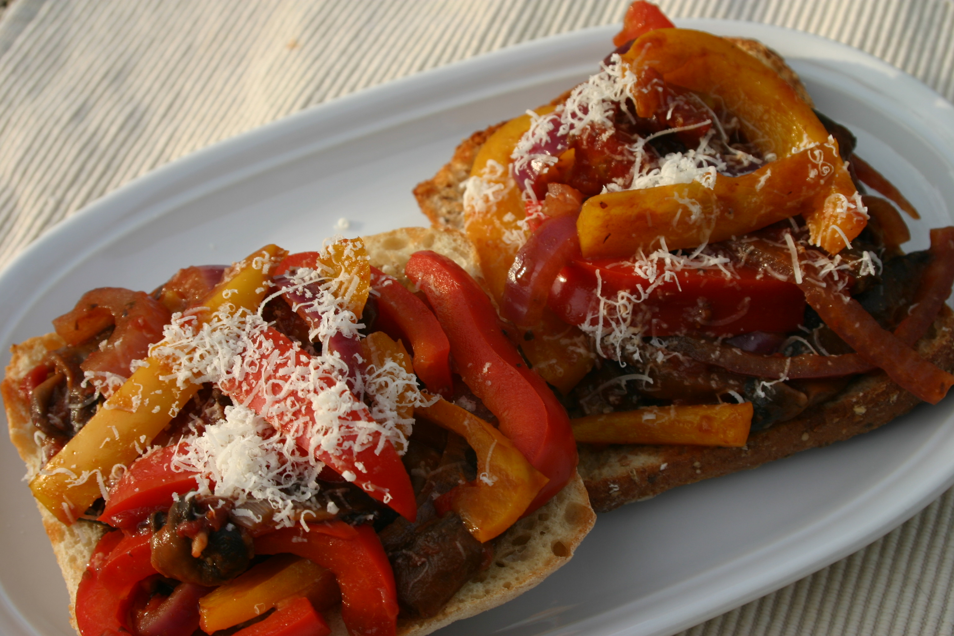 Finally scoop the veggies onto the bread. The recipe should make enough to cover four large slices. Sprinkle with freshly grated parmesan and serve immediately.