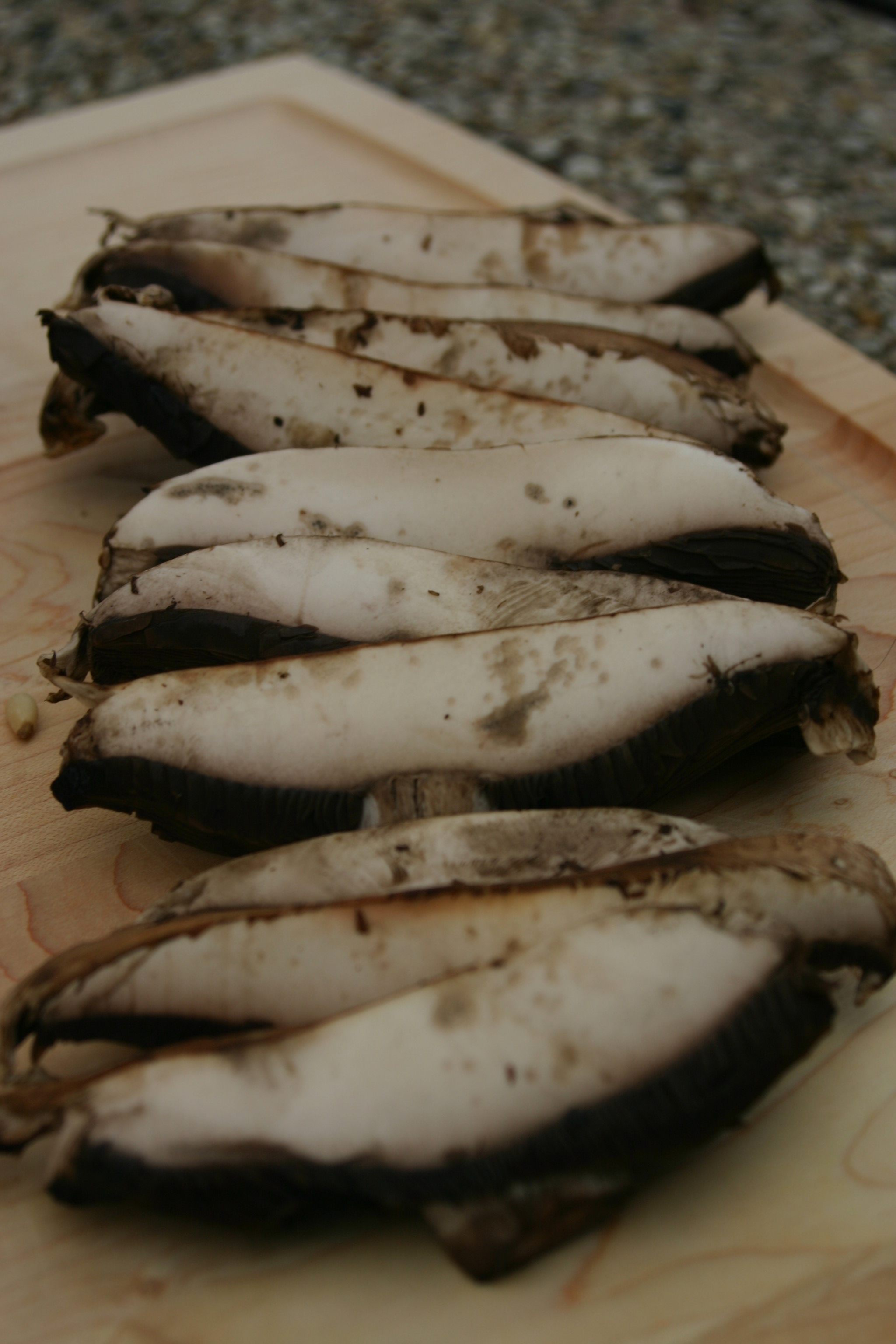 First we tossed the pine nuts with the spinach. Then we sautéed the portabellos with olive oil, balsamic vinegar and oregano.
