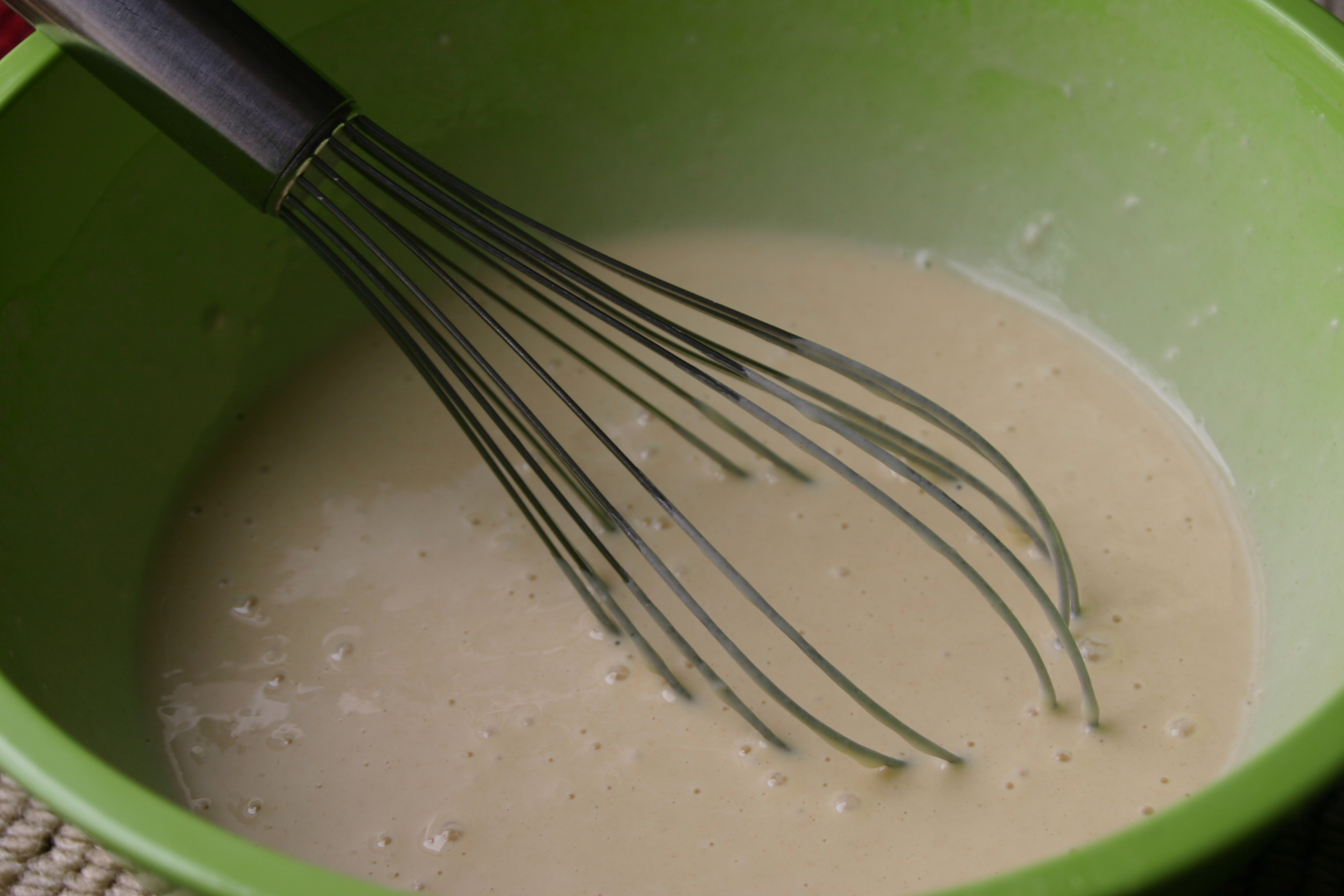 We started by whipping flour, salt, milk and eggs into a batter.