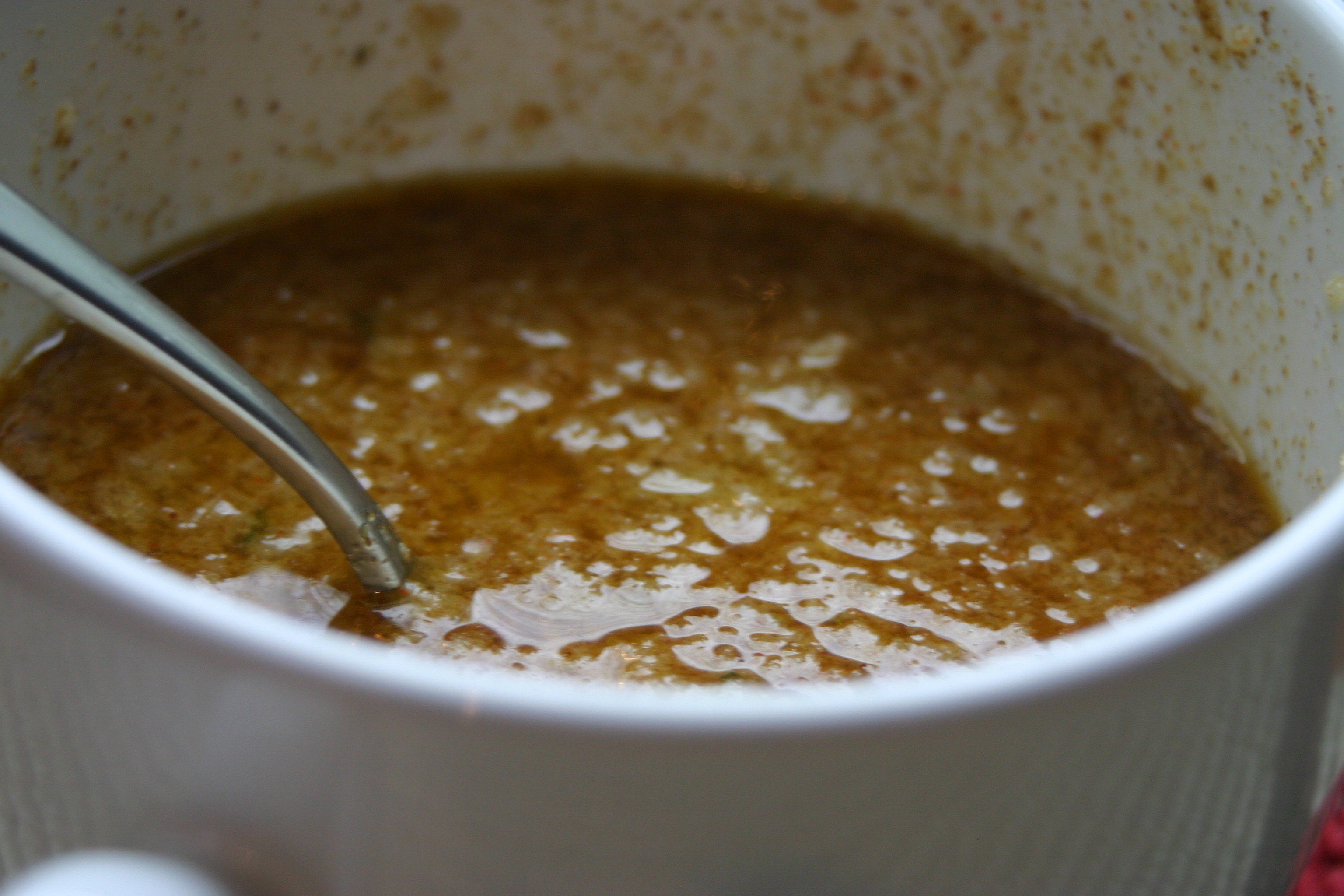 We then added an onion, garlic and cilantro into the food processor and created a puree. Mr. N helped me to combine the puree with the olive oil, cumin, coriander and cayenne pepper.