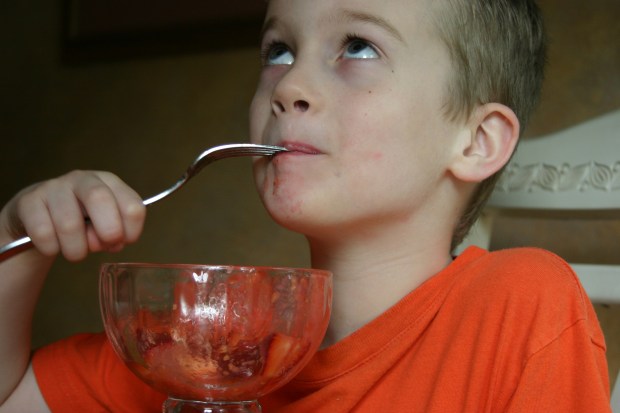 Back to our dessert, I mean breakfast, Dad and I would give it 3 spoons. You really can’t go wrong with raspberries or strawberries. Miss A gave the dish 4 spoons and ate it up. When I asked Mr. N if he liked it, he gave it some thought.