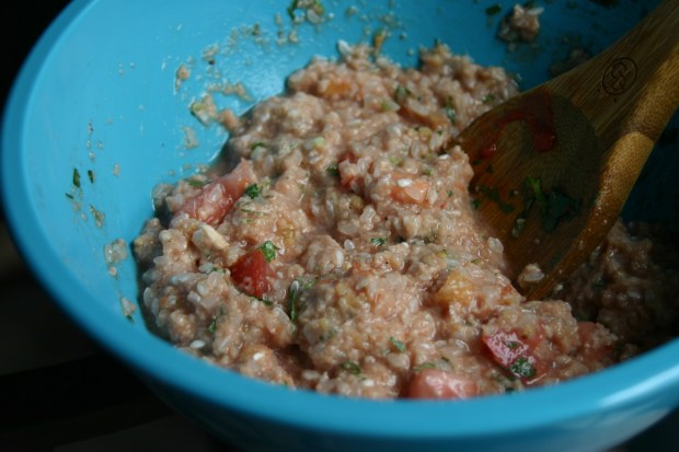 Knowing the kids wouldn’t touch tomatoes or onions we made theirs with ground chicken, rice, lemon juice, garlic, tomato sauce and cilantro.