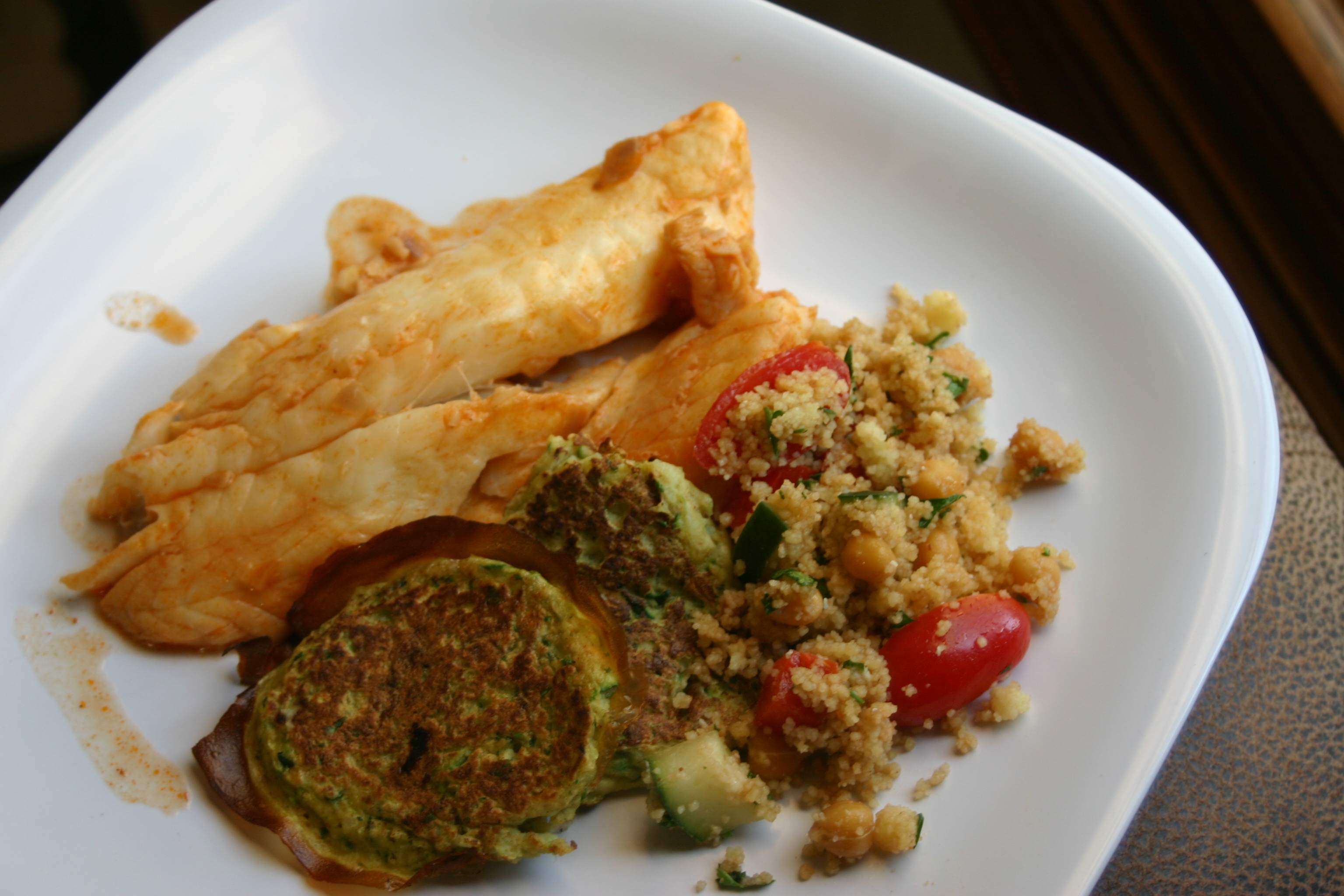 The haraimi was very flavorful fish made hearty by the tomato sauce. We served the fish with zucchini fritters and couscous (stay tuned for those recipes later this week).