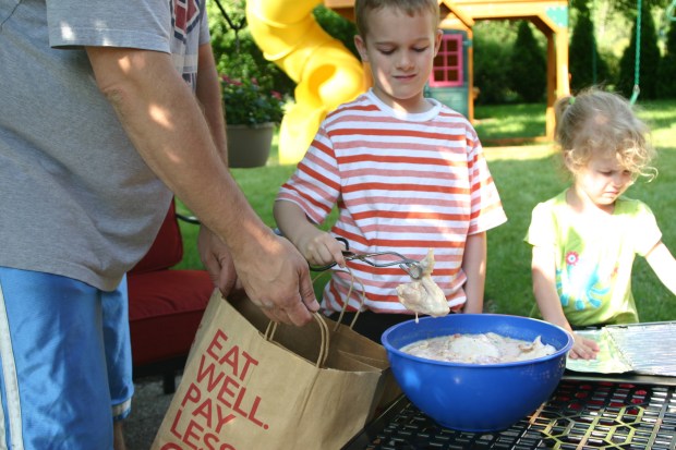So for Mr. N, we started with a mix of chicken legs and chicken wings because they’re easiest for the kids to eat.