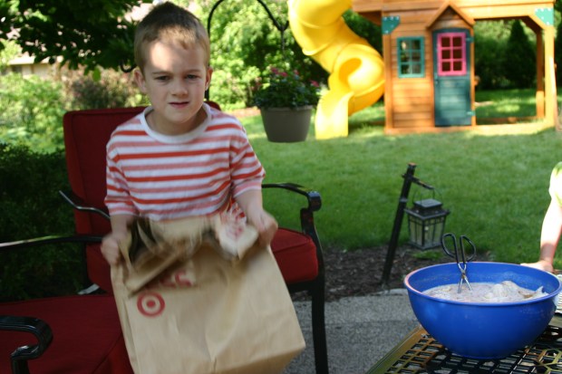 They are adorable! I love how serious he is while shaking the bag! 🙂