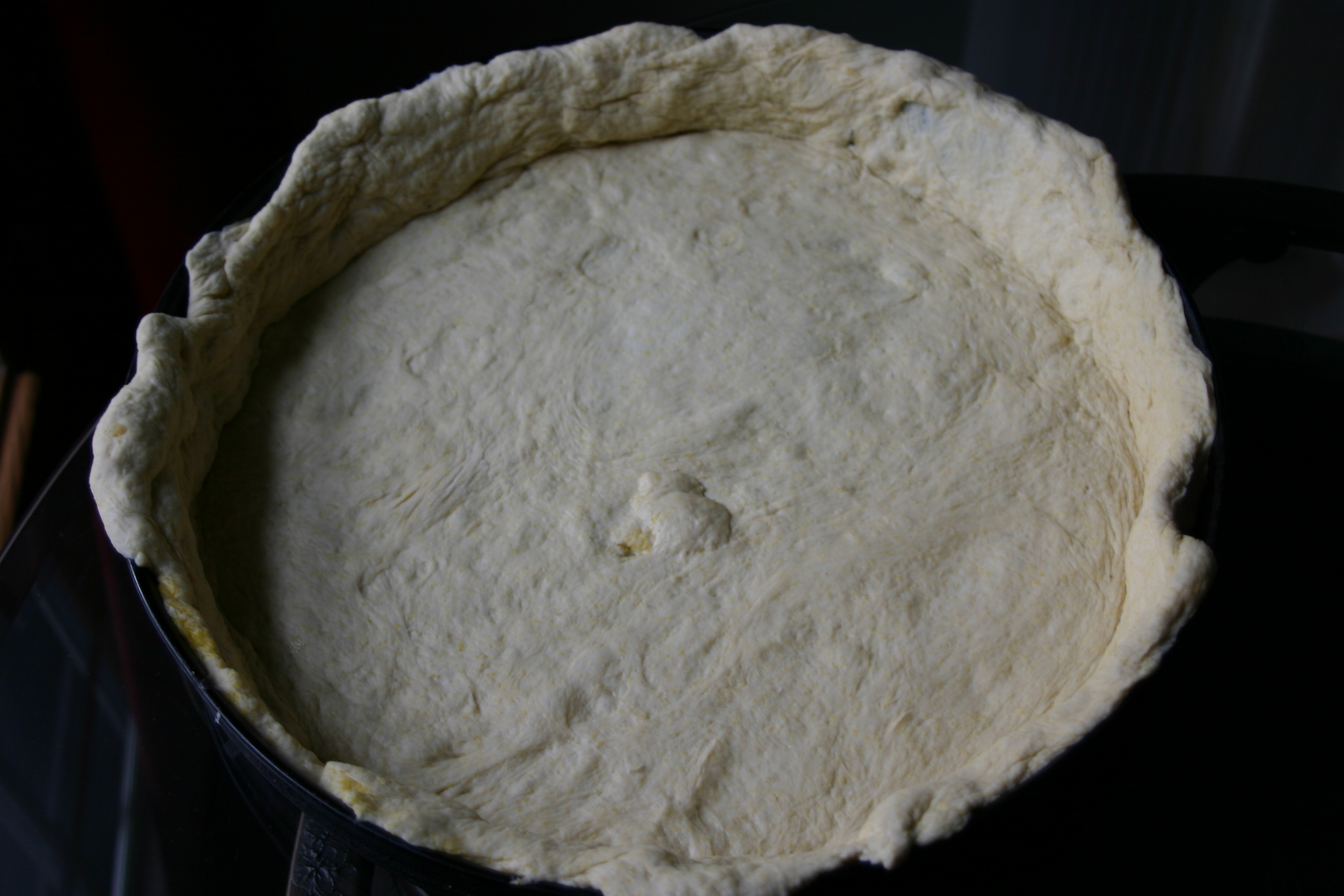 We then placed our rolled out dough in the pan and took the edges up the sides.