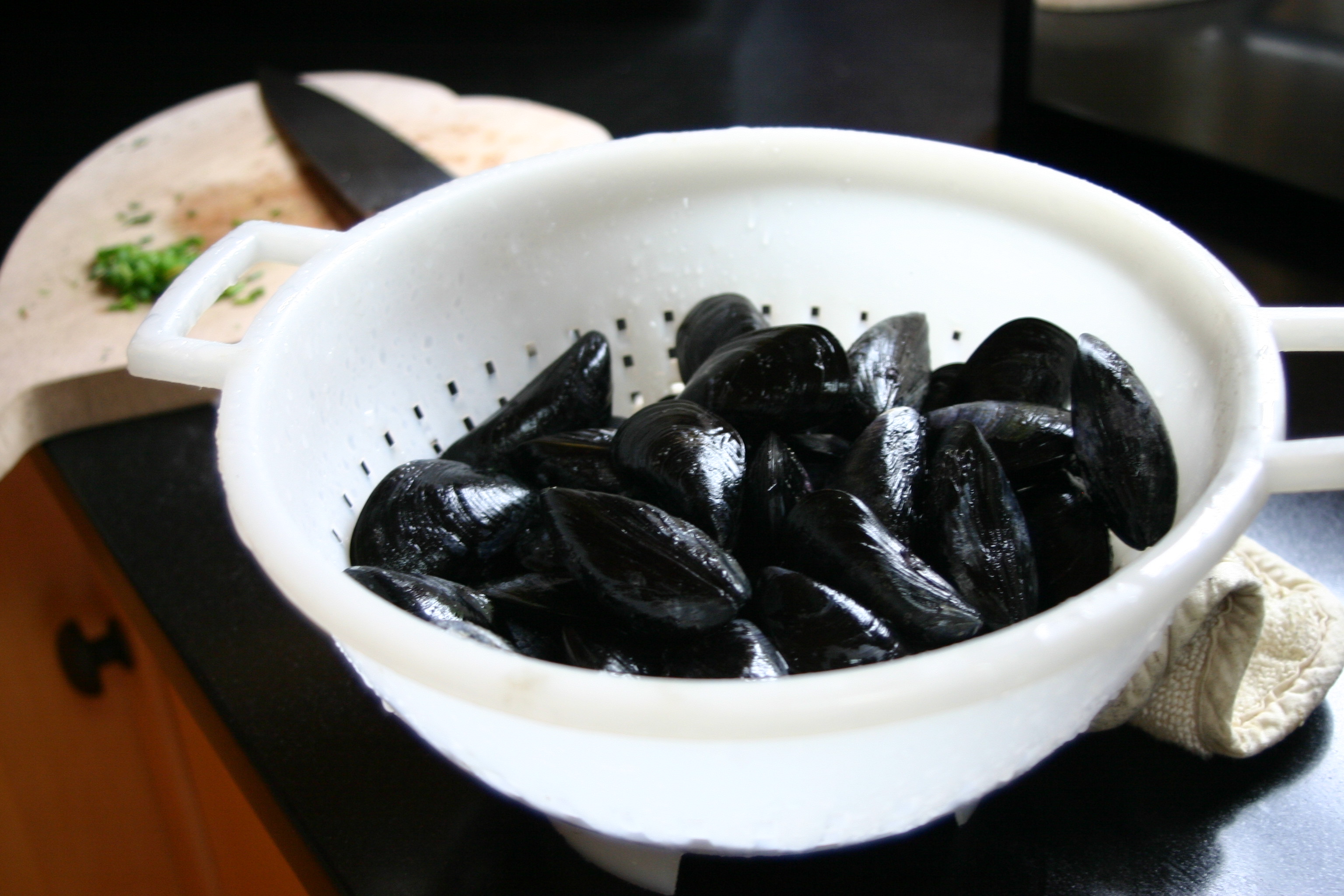 We let the sauce thicken and reduce for a about 4 minutes and poured it over the mussels to serve.