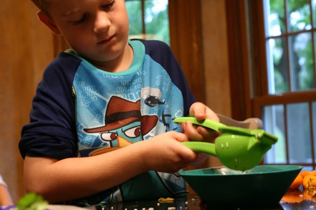 Mr. N was back at it with his favorite kitchen gadget again and squeezed the oranges for us.