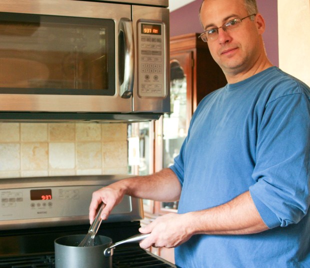 Mike managed the custard, bringing it to a boil and stirring as it thickened.