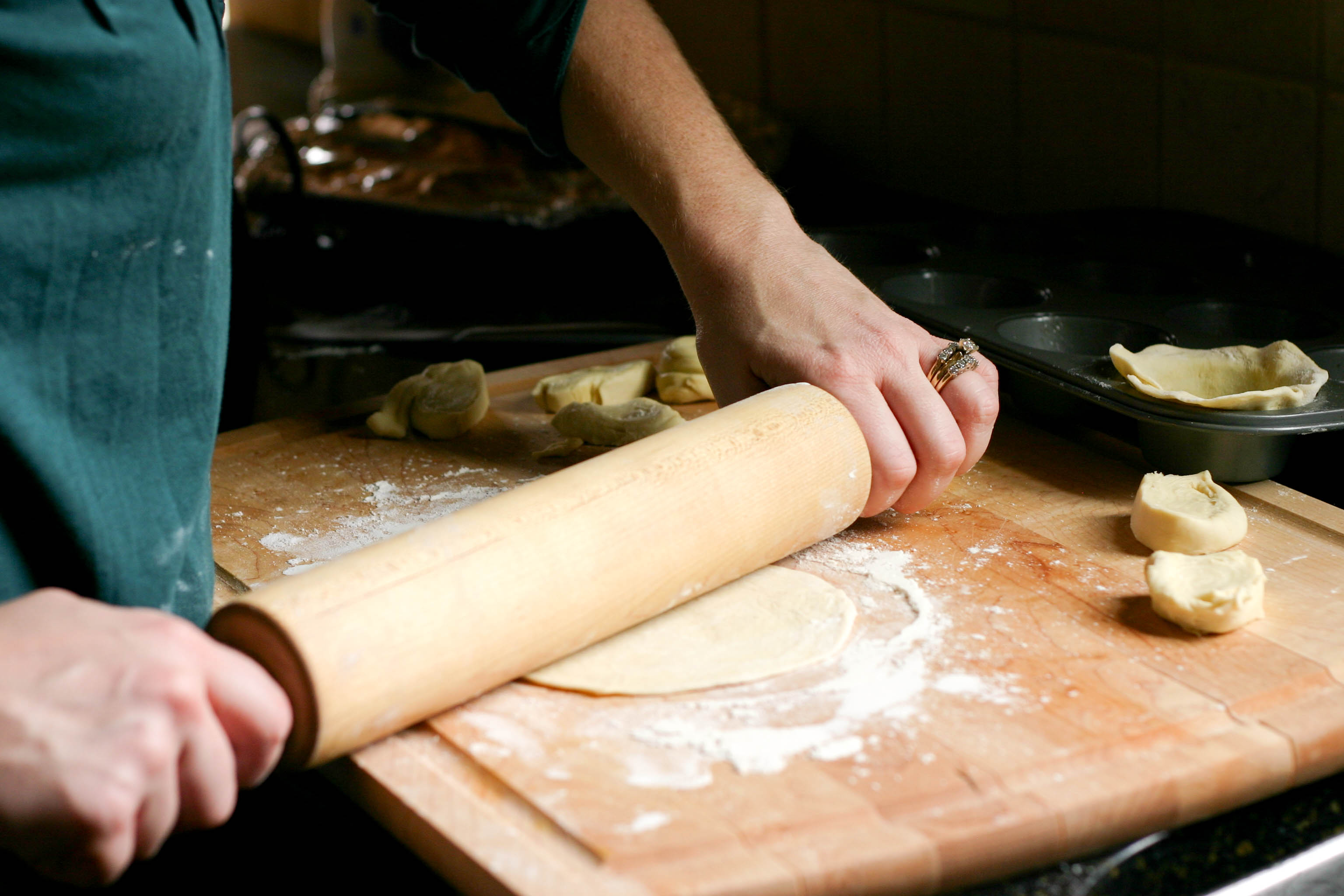 I then laid each piece flat on a lightly floured surface and rolled them out into four-inch circles.