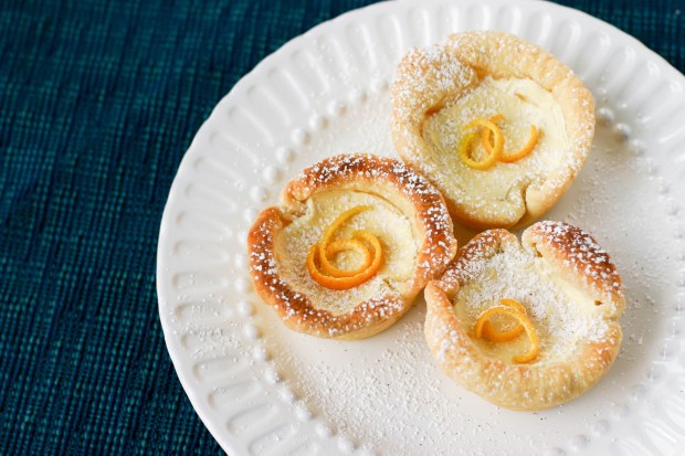 The orange curls were just a decoration for the photo. I haven’t attempted candied orange peels yet, but they would sure be good with these tarts. 🙂