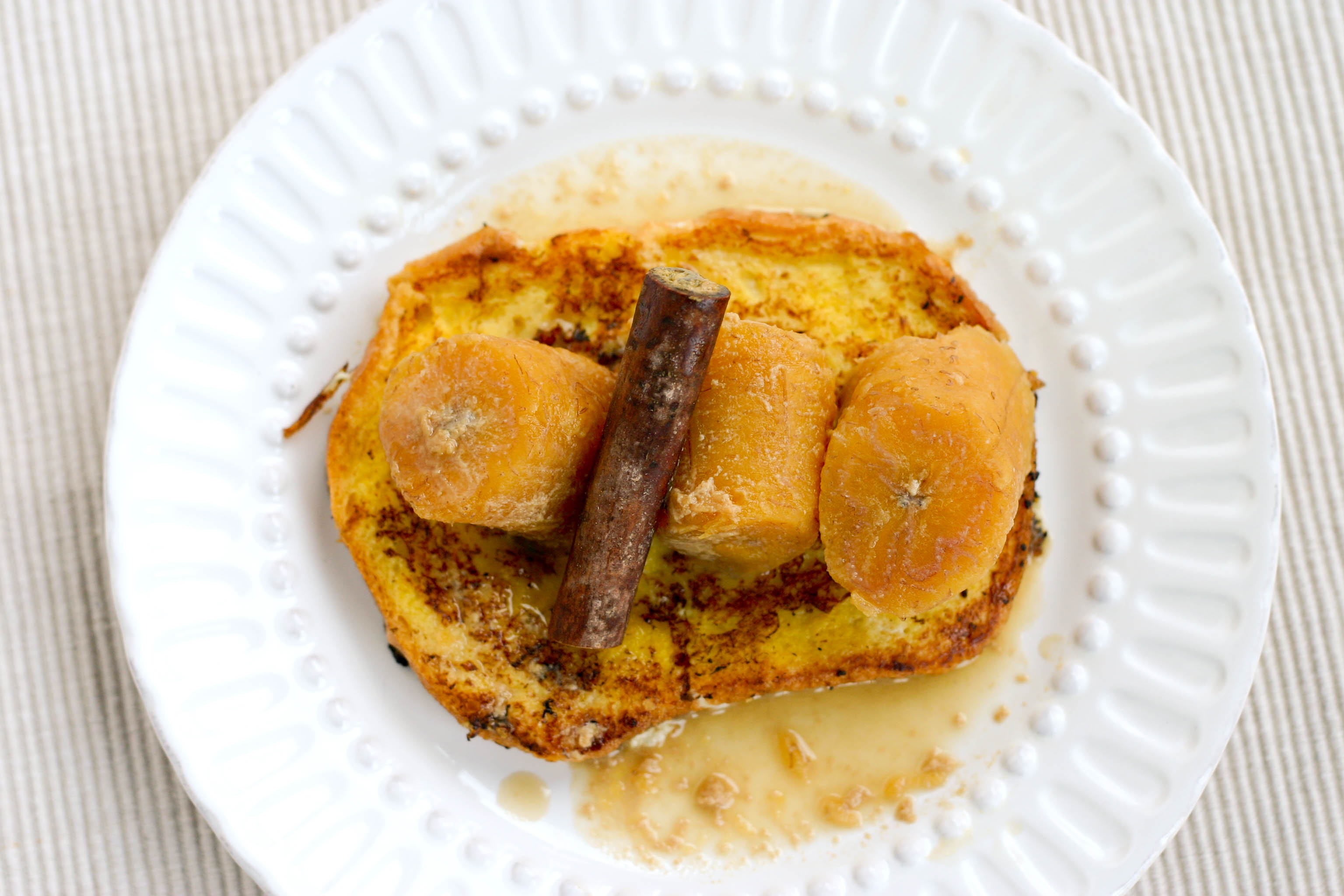 Now why we’ve never used our banana bread as French toast before is beyond me – it is seriously good! The warm sauce from the maduros makes the banana bread melt in your mouth and is full of syrupy-banana-goodness.