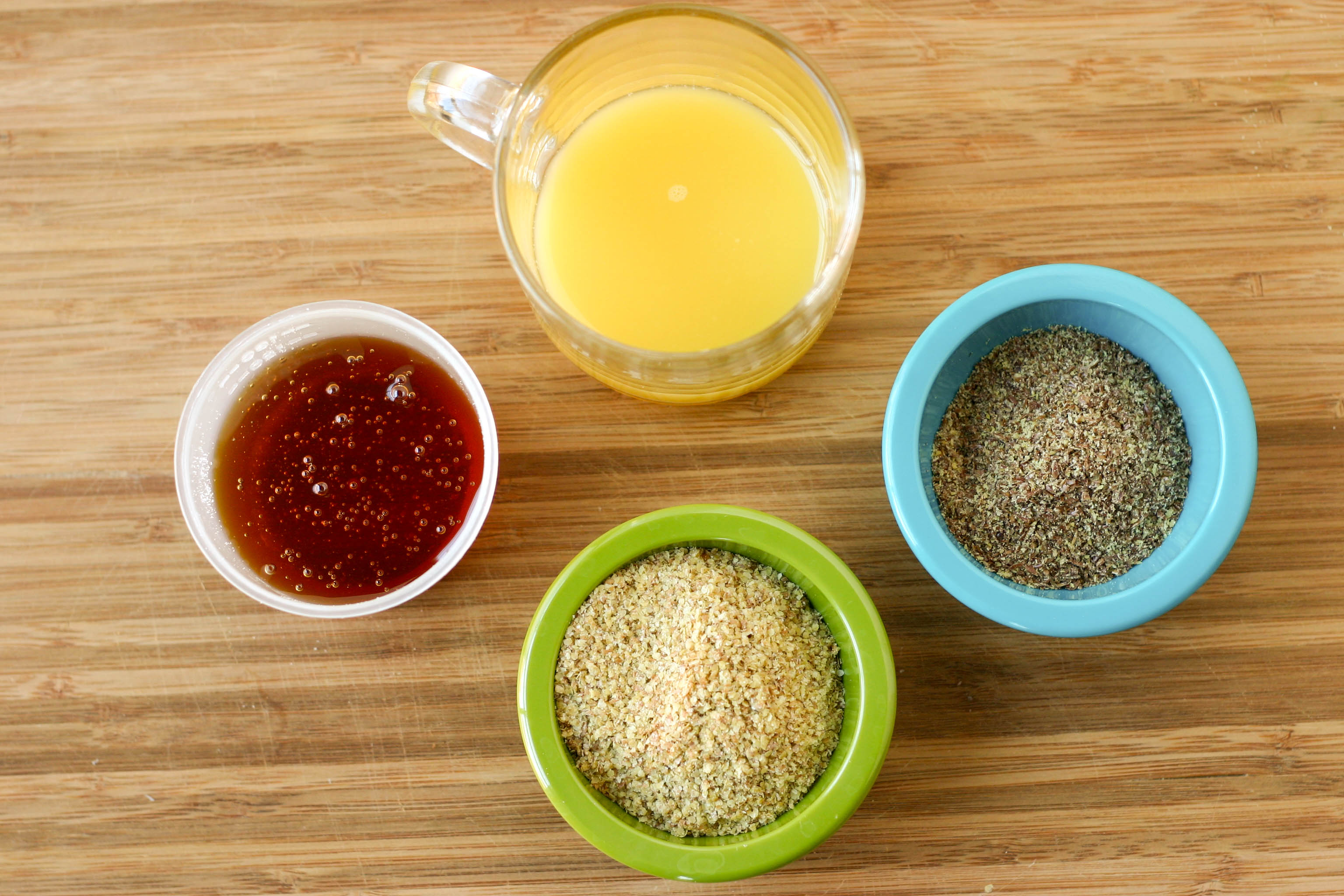 Next came the healthy ingredients including orange juice, honey, ground flax-seed and wheat germ. The ground flax-seed and wheat germ were inspired by Linda.