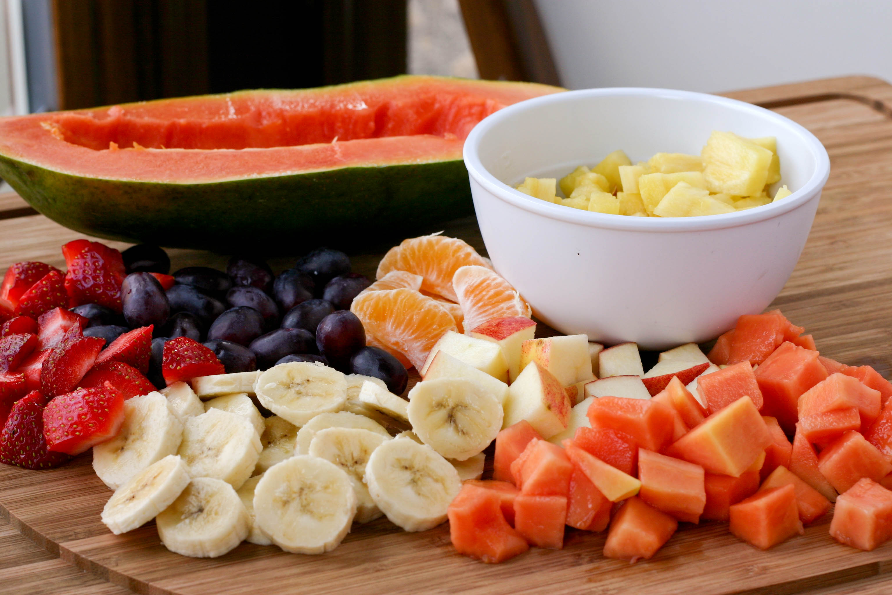 We then chopped all the fruit, setting aside one half of the papaya for an alternate use.