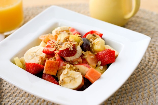 We’ve also enjoyed the granola in parfaits as well as on its own. And if it’s any indication about how much we’re enjoying this recipe, we’ve since made it three times and even picked up an air tight container that we could specifically dedicate to our Kauai granola. (Speaking of which the container is empty…guess what we’ll be making today!) I had no idea how easy it was to make homemade granola and just how fantastic it could be. Of course, my favorite way to eat it is still covered in oodles and oodles of fresh fruit. Delish!
