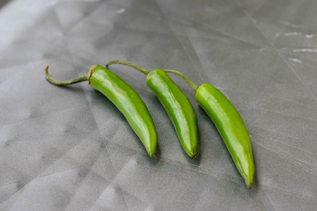 We began our recipe with Serrano peppers which are a bit less intense than the birds eye chili peppers which we thought would be better for the kids.