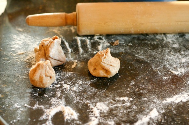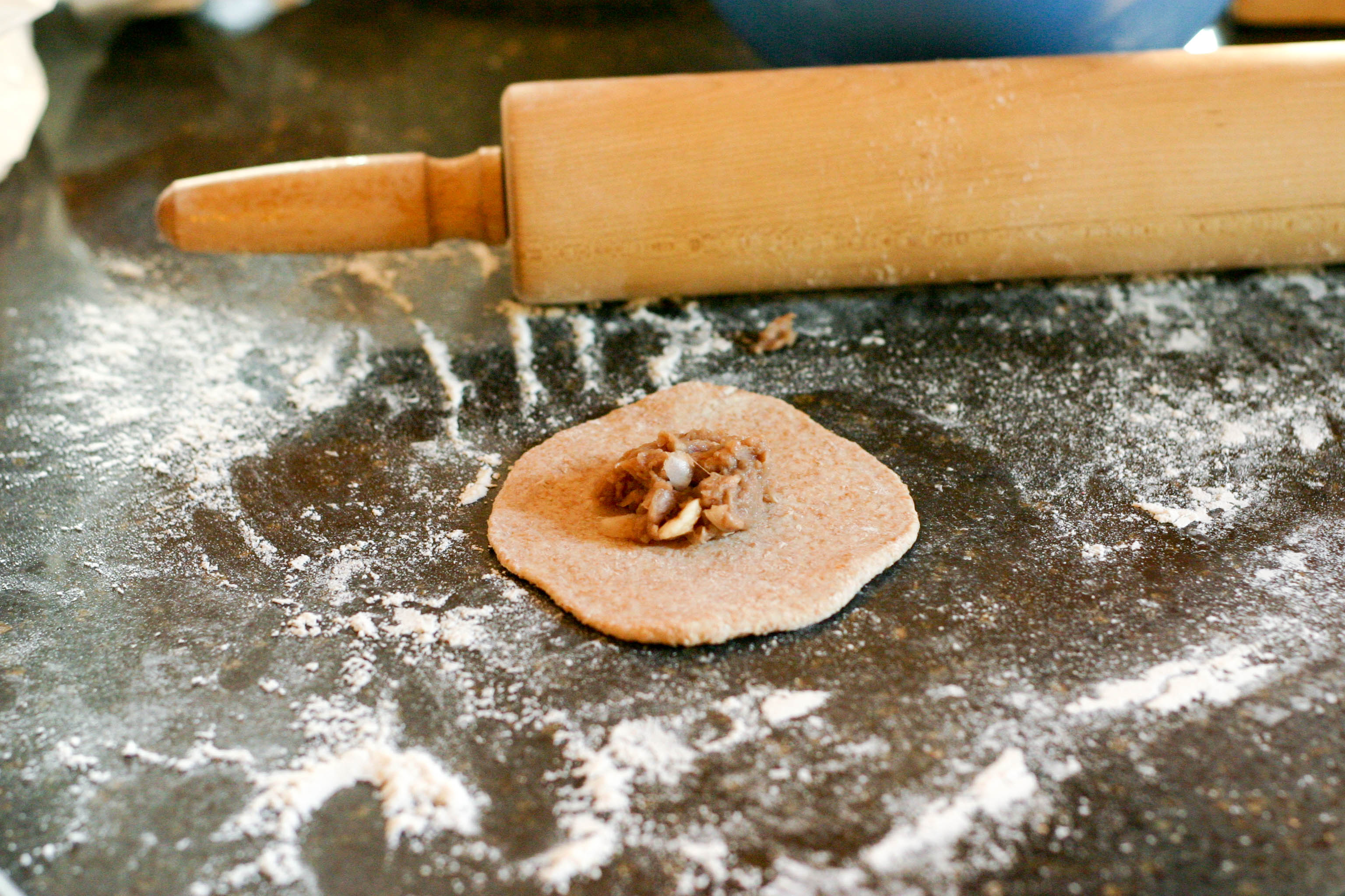 These get rolled out and topped with the meat filling–just a dollop is plenty.