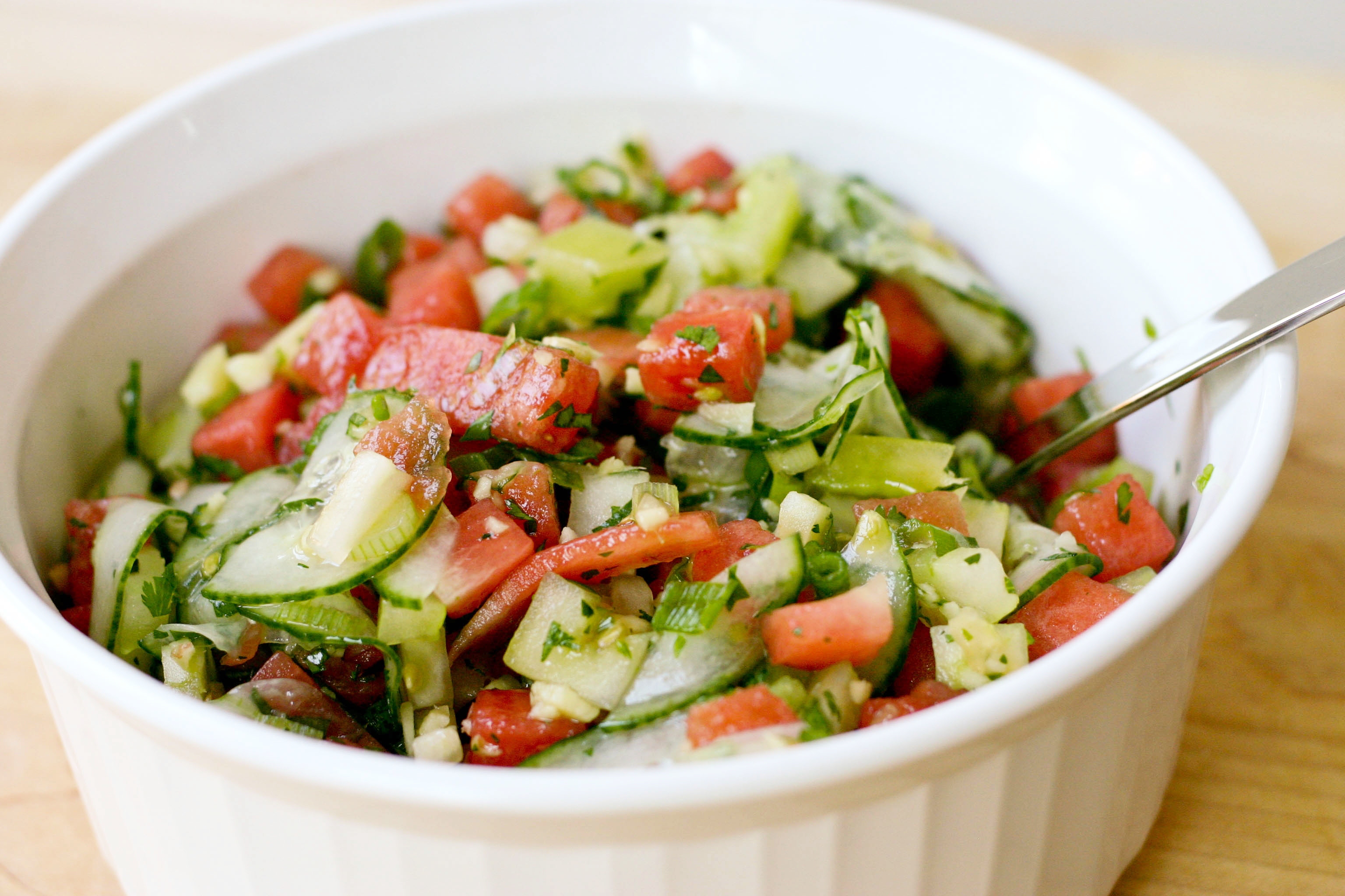 Love the look of the salad – and I love cucumber, tomato, watermelon… I’d be all over this 🙂