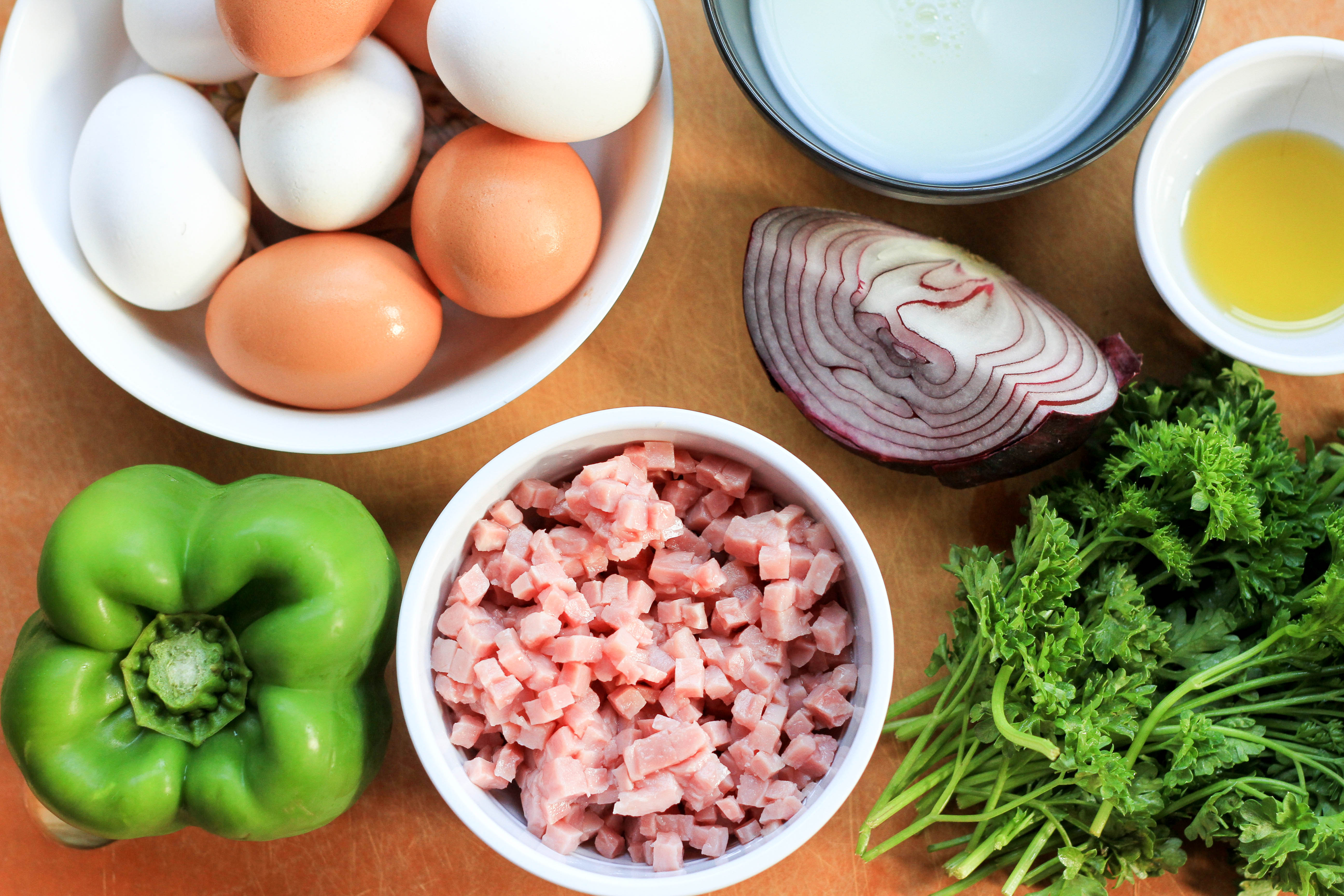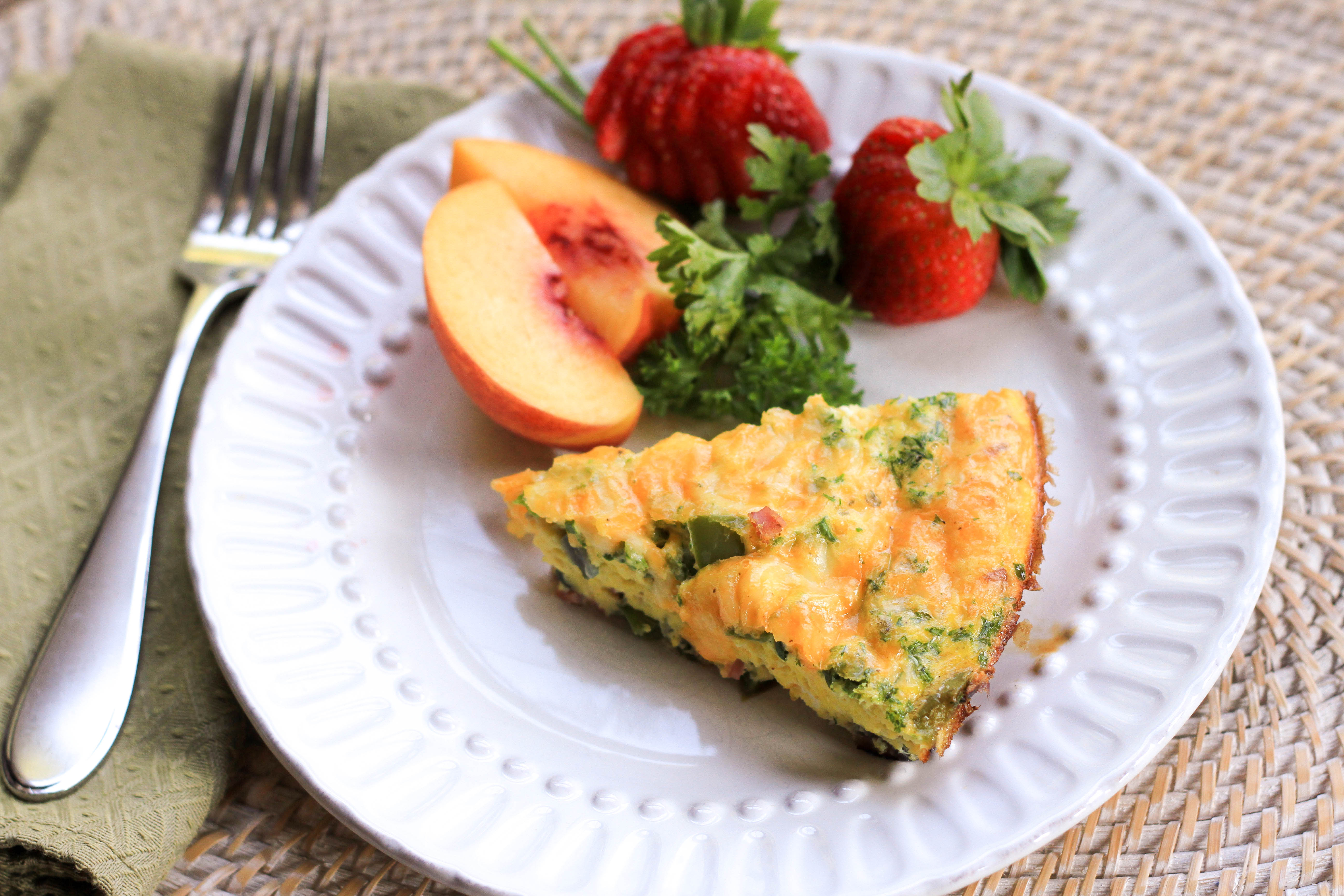 While the conversations change and the hummingbirds come and go, and whether I’m 12 or Mr. N is 11, meal time remains a lively tradition in the cabin. It begins in the kitchen and continues around the table long after the last bite is eaten. There are no distractions. No tv’s. No phones. No walkmans. No iPads. No drama. It’s family time. It’s our time. So today, in honor of Colorado and relaxed, sit down breakfasts, Miss A and I bring you a Denver Omelette Frittata.