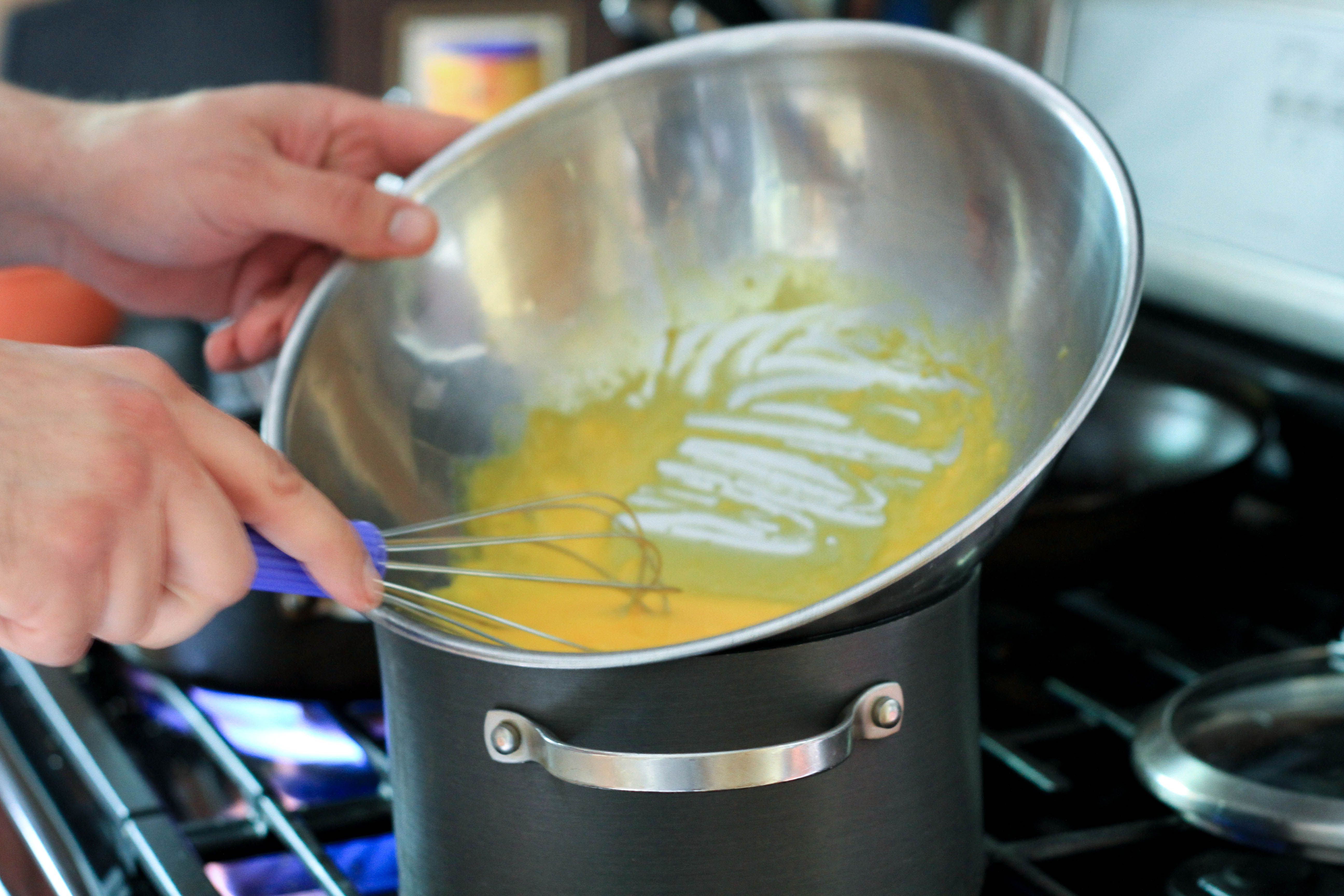 Mike worked on our Hollandaise sauce made from the farmy egg yolks.