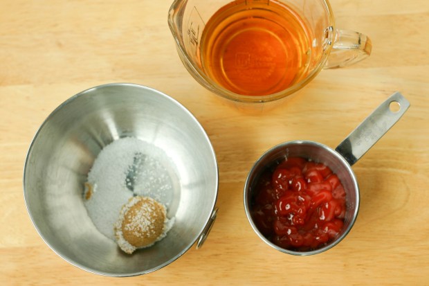 The day before we planned to slow cook the pork, Miss A and I prepared the barbecue sauce. We used ketchup, apple cider vinegar, salt, brown sugar and crushed red pepper.