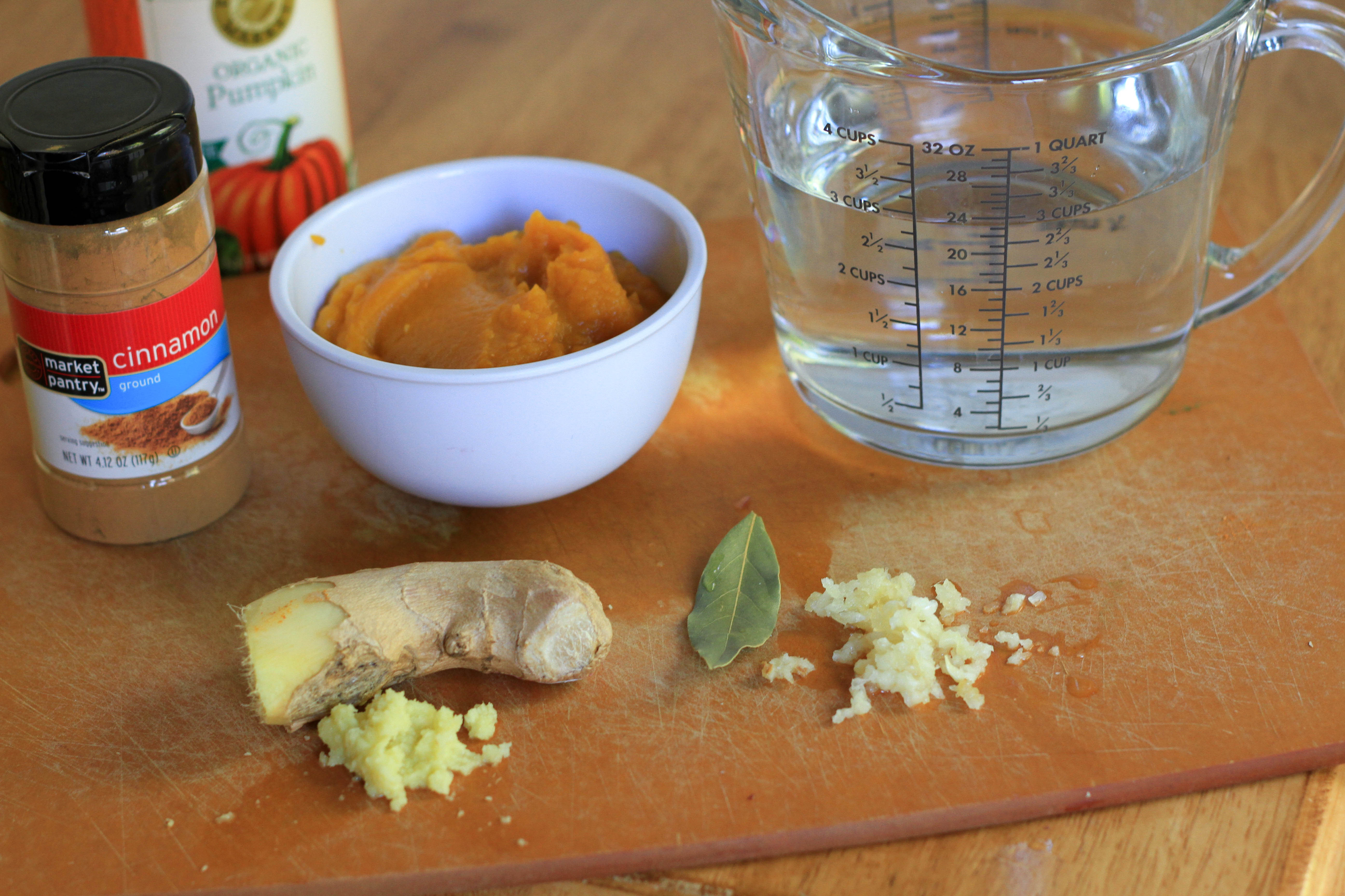 Then we added the pumpkin puree and water. We brought the mixture up to a boil and then reduced to a simmer for about 35 minutes (until the water had absorbed and the lentils were tender).