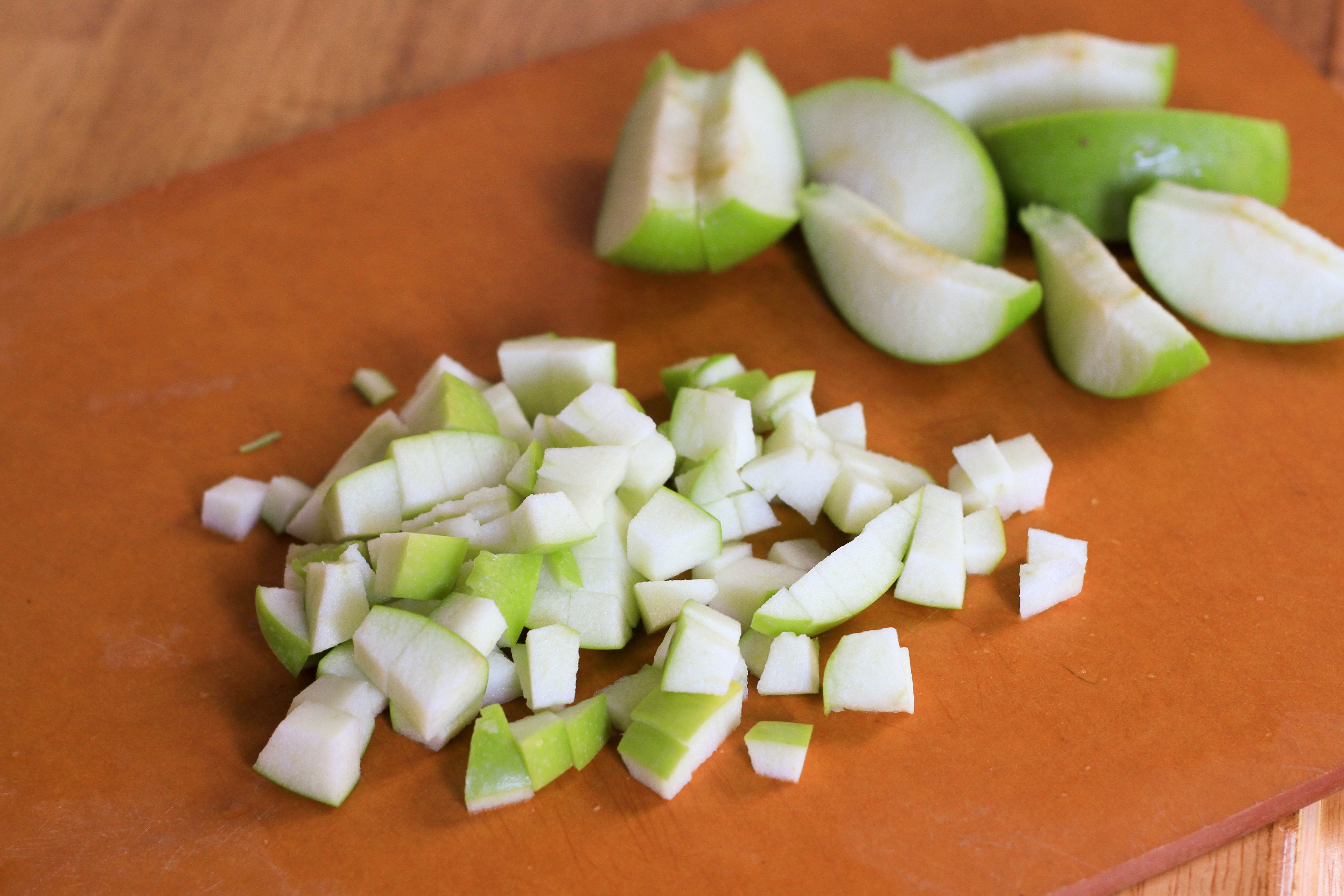 Finally, we removed the bay leaves and tossed in some chopped apples. We let the apples cook in the curry for about five minutes, then we added a bit of lemon juice and were good to go.